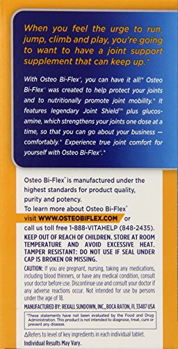 ReleaseDate : 2007-01-10 Studio : Osteo Bi-Flex Publisher : Osteo Bi-Flex Binding : Health and Beauty Product Description Osteo Bi-Flex Triple Strength was created to nurture and help protect your joints, and to nutritionally support joint mobility.* It features the legendary Joint Shield plus glucosamine, which strengthens your joints one dose at a time, so that you can go about your business ? comfortably.* Experience true joint comfort for yourself with Osteo Bi-Flex.*?When you want to run, jump, climb and play, you're going to want to have a joint support supplement that can keep up.* With Osteo Bi-Flex, you can have it all! 0