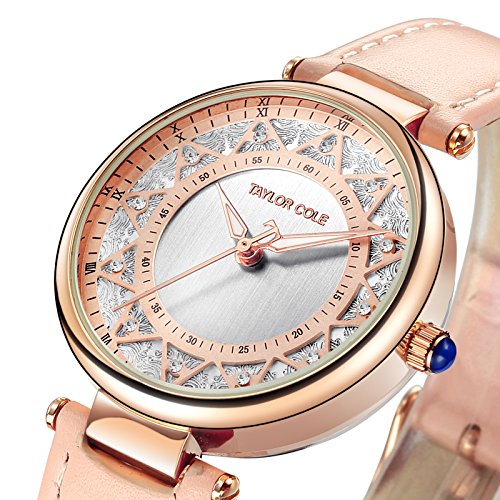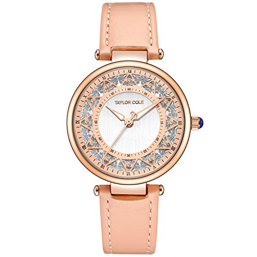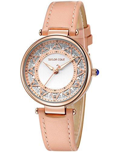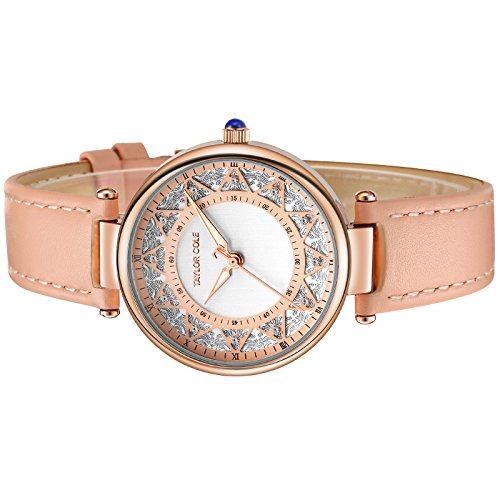 Taylor Cole Ladies' Floral Pattern Dial Quartz Leather Band Wrist Watch TC105