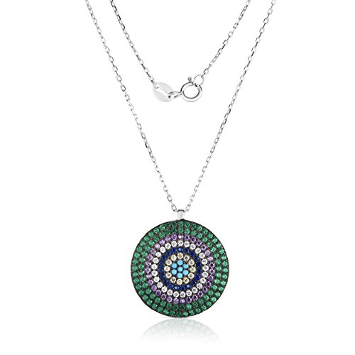 -. Binding : Jewelry -. Brand : Unique Royal Jewelry -. Color : Green/Silver -. Department : womens -. Feature : 925 Solid Sterling Silver Nano Pendant with Created Turquoise, Emerald, Amethyst, Blue and Yellow Sapphire/CZ Cluster Pendant and Necklace. / Necklace is adjustable to length of 16", 17" or 18" to accommodate Comfort and personal style. / Chain is 1.2mm Cable Link. Total Weight of Sterling Silver is 3.3 gr. / 3.50 Carat Total Weight of Combined 175 stones pave set. / Elegant Gift Box Included. -. Label : Unique Royal Jewelry -. Manufacturer : Unique Royal Jewelry -. ProductGroup : Jewelry -. ProductTypeName : FASHIONNECKLACEBRACELETANKLET -. Publisher : Unique Royal Jewelry -. Studio : Unique Royal Jewelry -. Title : Sterling Silver Outer Green 6-Multiple Colors Circular Nano Pendant Necklace with Adjustable Length.