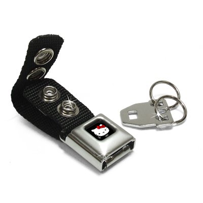-. Brand : Hello Kitty -. Color : Black -. EAN : 0852669026071 -. Feature : This keychain conveniently releases your keys with a push of the button. / Two snaps on the 1 inch nylon webbing make it easy to attach to your belt, purse, sports bag, etc. / This is a very unique item and is sure to catch the attention of everyone around. It is made with a miniature seatbelt buckle clasp and really works! / Brand new official licensed product. -. Label : BD -. Manufacturer : BD -. Model : kc-hkb -. MPN : KC-HKB -. PackageQuantity : 1 -. PartNumber : KC-HKB -. ProductGroup : Automotive Parts and Accessories -. ProductTypeName : AUTO_ACCESSORY -. Publisher : BD -. Studio : BD -. Title : Hello Kitty Black Logo Seatbelt Buckle Key Chain, Official Licensed -. UPC : 852669026071