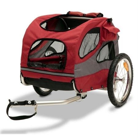 Studio : Solvit Publisher : Solvit Binding : Misc. Product Description Features: . Cabin dimensions: 26 x 17 x 20 . Full dimensions: 46 x 23 x 28. For pets up to;50 lbs . Constructed from rugged 600d polyester with waterproof floorboard. Front door includes zippered mesh screen layer and a zippered vinyl windscreen layer to block wind and weather . Rear loading door with zipper . Assembles quickly with no tools; folds down easily for storage. . Includes universal bicycle hitch . Removable washable cushion. Adjustable safety leash keeps pets secure while riding. 16 air-filled tires. Three storage pockets . One year warranty HoundAbout Medium Bicycle Trailer For Pets Up To 50 Pounds. Our Medium HoundAbout Bicycle Trailer is a great way to maintain an active lifedesign with your pet. If you want to go on a bike ride but your pet isnt up to it you can still take them along. Going to the park to give your pet a little fun and exercise? Why not get some exercise yourself without tiring them out along the way? Leashing your pet to your bicycle is unsafe for your pets and for you - the HoundAbout Bicycle Trailer solves that problem and your pet will love the ride.; Want to go on a long walk or jog but not sure your pet can make it all the way? Convert the HoundAbout Trailer into a pet stroller with our easy-to-install Pet Stroller Jogging Kit. Converts from Trailer to Pet Stroller and back in less than one minute. The front door on the HoundAbout Bicycle Trailer includes a zippered mesh screen layer and a zippered vinyl layer to block wind and weather. Use them in different configurations depending on riding conditions. A removable washable cushion keeps pets comfortable on long rides. Includes two storage pockets on the sides plus a roomy mesh pocket on the roof. Assembles quickly and easily with no tools and folds down for easy storage. 0