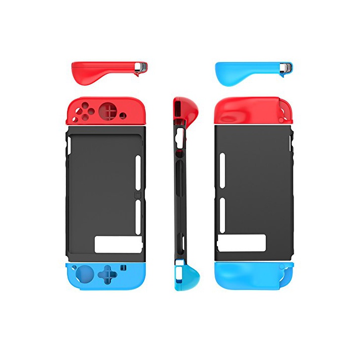 Nulaxy Nintendo Switch 케이스 2in1 본체 커버+Joy-Con전용 커버 실리콘 소프트 케이스 고품질내 충격초 보호 (L)블루+(R)레드