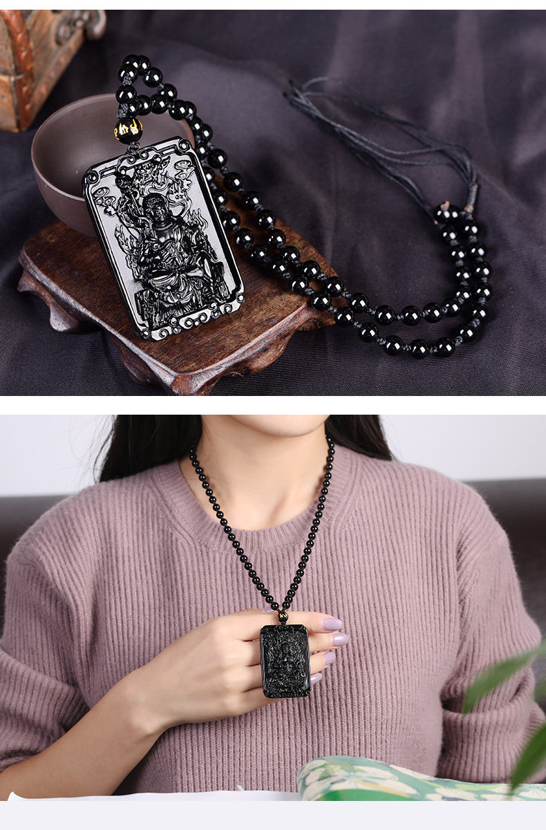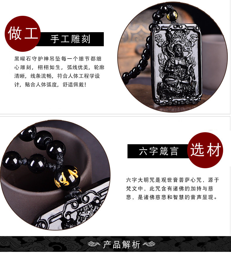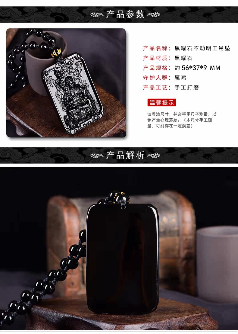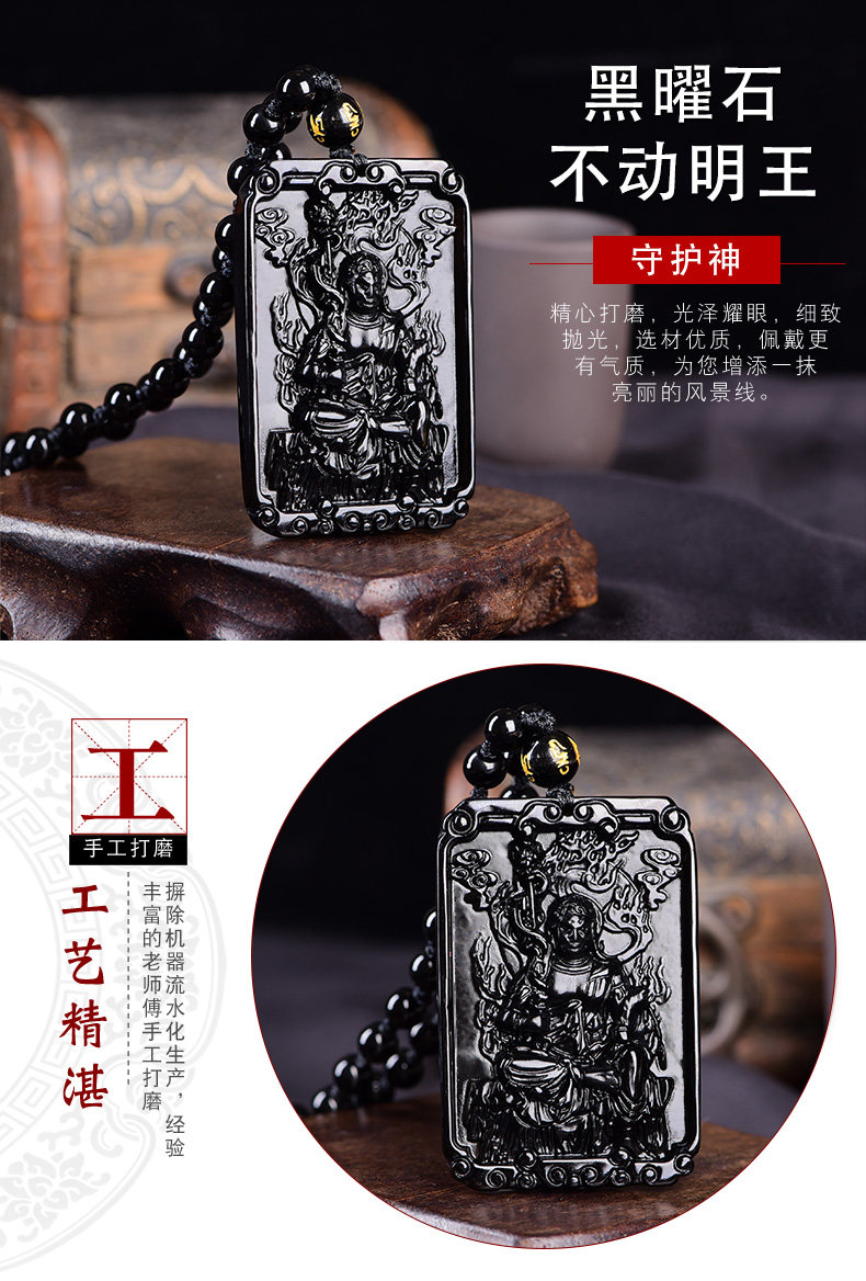 黑曜石不动明王吊坠 属鸡本命佛不动尊菩萨守护神男女