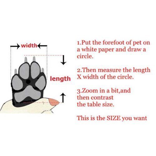 Recommends measuring way: Place the paw on a piece of paper, pressing gently. Mark both sides of the paw on the paper, then measure the distance between the marks. This indicates the paw width to use when ordering a size. in order to get the exact data, four of your dog's paws need to be measured, please use the longest and widest one