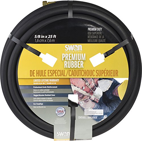 Swan SNCPM58025 Premium Rubber Heavy Duty Water Hose 25 ft, 5/8" diameter, Black