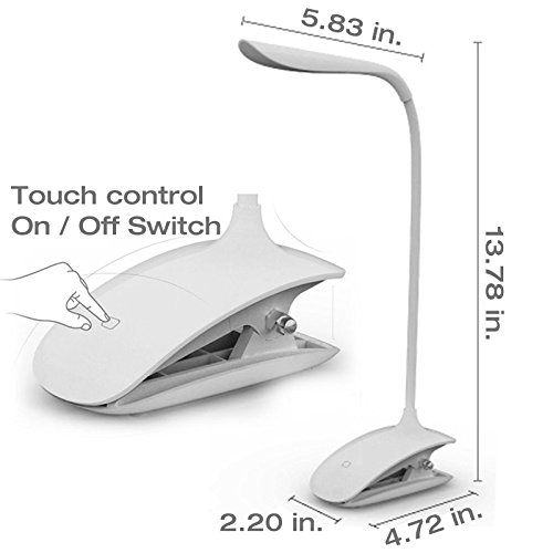 -. Title : LED Desk Lamp, ZHOPPY Dimmable Clip On Bedside Lamp Table Lamp with Clip-On Clamp - Bedside Reading, Eye-care, Energy Efficient, Portable, USB Rechargeable, Gooseneck Tube Touch Control Light