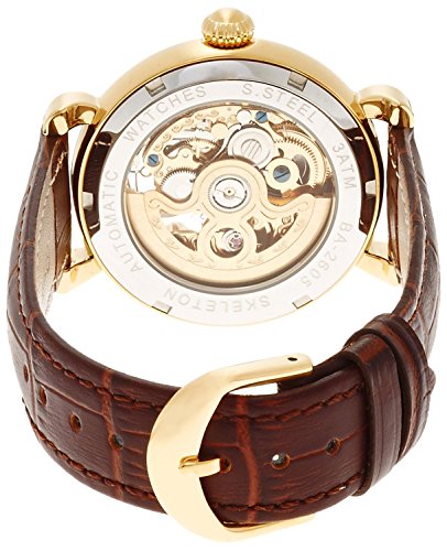 [블루기아나]BROOKIANA 오리진 오픈 세컨드 자동 감기 골드×브라운 레더 BA2605-BKGPBR 맨즈 손목시계