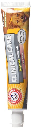 -. Binding : Misc. -. Brand : Arm & Hammer -. EAN : 0742797734286 -. Feature : Eliminate bad dog breath with this dog toothpaste so that you can enjoy your dog's kisses without the stinky dog breath / Dog toothpaste is gentle yet effective in eliminating bad breath, reducing tartar buildup, and whitening and brightening your dog's teeth / Natural ingredients ensure optimal dental health for your dog with the flavor of a tasty treat he or she will love / Formulated with natural ingredients that work as a dog breath freshener leaving a pleasant scent to fight bad dog breath / See product description for more details -. Label : Arm and Hammer -. Manufacturer : Arm and Hammer -. Model : SFB8190PS -. MPN : SFB8190PS -. PackageQuantity : 1 -. PartNumber : SFB8190PS -. ProductGroup : Pet Products -. ProductTypeName : PET_SUPPLIES -. Publisher : Arm and Hammer -. Studio : Arm and Hammer -. Title : Arm & Hammer Clinical Care Enzymatic Toothpaste Gel for Dogs – Chicken Flavor -. UPC : 742797734286