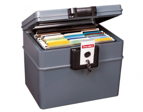 -. Feature : 0.5 Hour fire resistance up to 1550F / Secured by a clamping style latch with key lock / Convenient to store letter sized hanging folders / Good choice for a small document and electronic media protection solution / Enables the chest to float during a flood and making it easy to locate as well as providing protection from the flood water