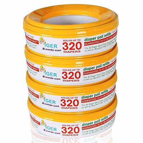 Refill for Diaper Genie and Munchkin Diaper Pails, is dedicated to offer you affordable diaper pail refills with great quality. Each refill holds 320 newborn baby diapers. 4 packs of IGER can last 4-6 months.
