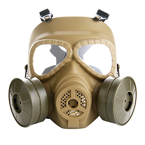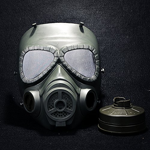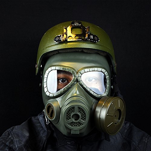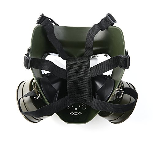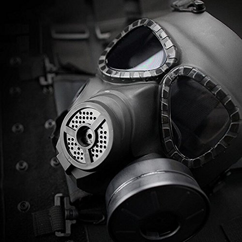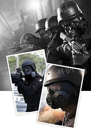 -. Feature : The lens will not be broken when on a strong impact of 5 joules / Made of engineering strong Thermoplastic polyurethanes (TPU), fits nicely on face and has a very comfortable EVA head cushioning pad / Shock resistant Engineering plastic,very tough and sturdy,high density nylon straps which can keep the mask stable in fierce competition / Excellent mask for airsoft game or movie shooting, cosplay, . Honorable person CS, masquerade, Halloween, Zombie Soldiers.Give you a feel of Fallout series / This product has passed ANSI Z80.3 drop ball test,and at a temperature of Minus 10 degrees Celsius to 42 degrees Celsius,the minimum impact resistance of the lens is 420 FPS.(the effective distance is 5 meters)