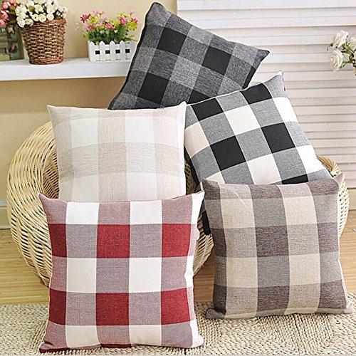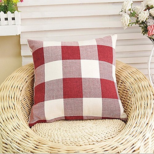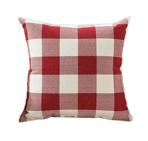 Red White Retro Checkers Plaids Linen Square Throw Pillow Cover Decorative Cushion Shams Pillowcase Love Cushion Case for Sofa 18 x 18 Inch