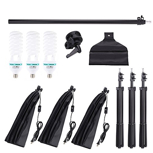 Package List: 3 * 135W Bulb 3 * Cube Softbox 3 * Light Stand 1 * Cantilever Stick 1 * Cantilever Clamp 0