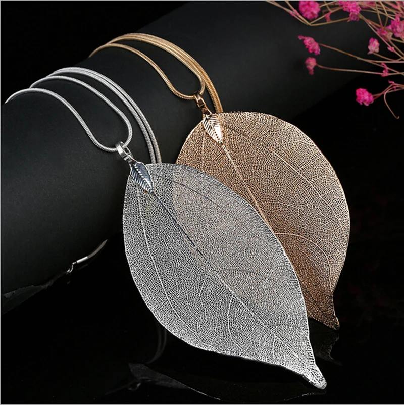 Model Number:leaves pendant long necklace