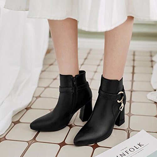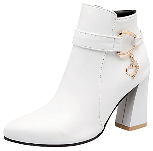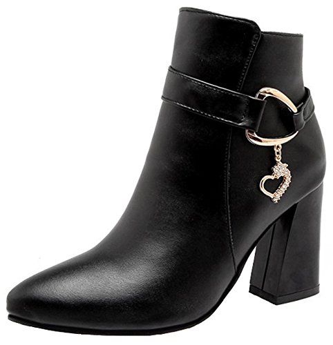 (Mofri)/Women's/Boots/DIRECT FROM USA/Mofri Women's Elegant Rhinestone Pendant Belt Side Zipper Ankle Booties Pointed Toe High Chunky...