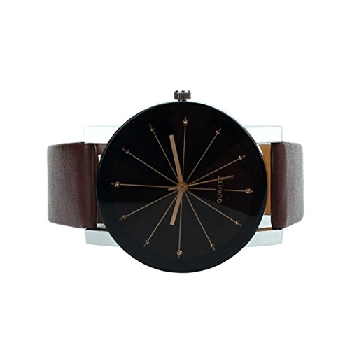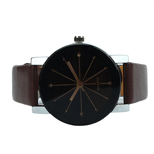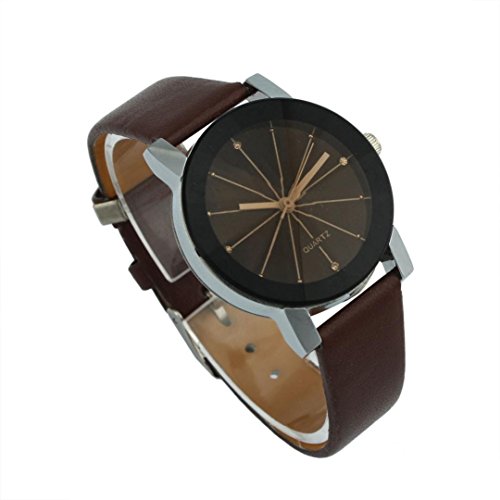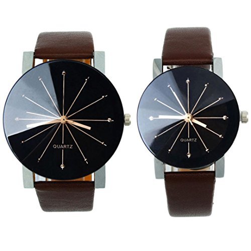 -. Title : Yoyorule 1 Pair Coffee Quartz Dial Clock Leather Wrist Watch Round Case for Lovers Couples