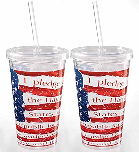 Patriotic Insulated Cup with Straw and Lid set of 2