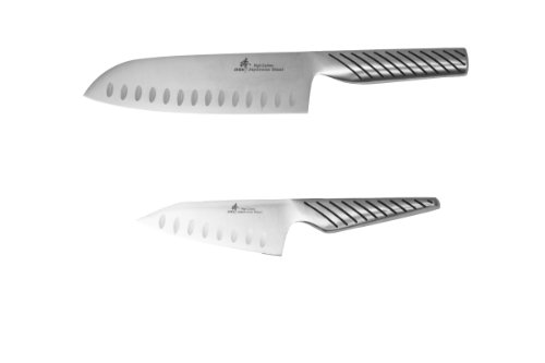 Blade Length x Width x Thickness: 7" x 2" x 2.5 mm for Santoku knife and 5.5" x 1.7" x 2.5 mm for vegetable knife, 0.65 LBS