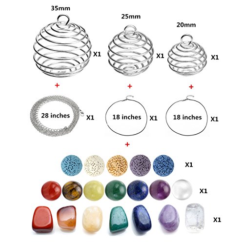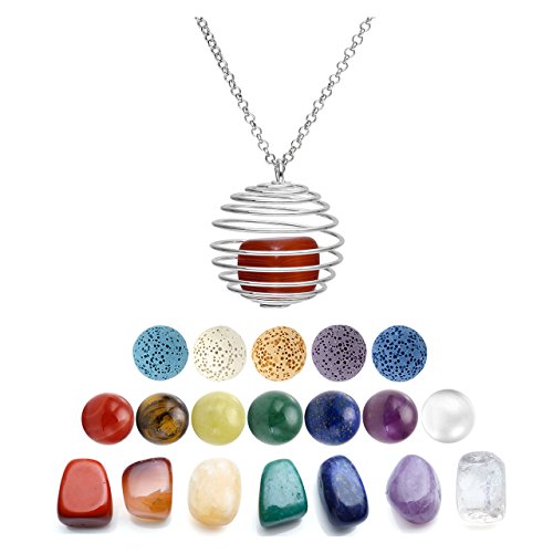 Top Plaza 3 Pcs Aromatherapy Essential Oil Diffuser Necklace Openable Spiral Cages Pendant Set W/5 Dyed Lava Rock And 7 Chakra Reiki Healing Energy...