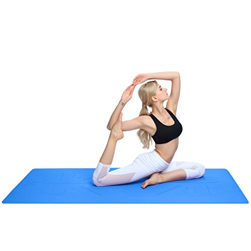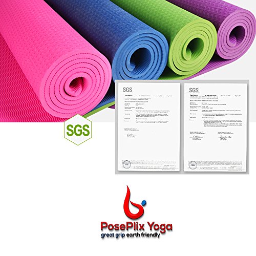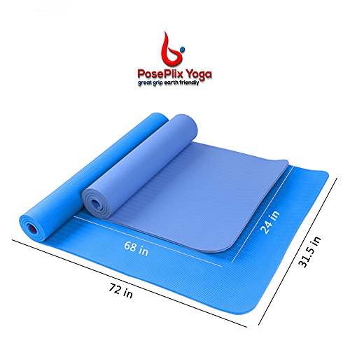 PosePlix Yoga Mat 72×31×1/4 Nonslip Surface Body Alignment Lines Anti-Tear Exercise Non-Toxic Odorless with Carrying Rope