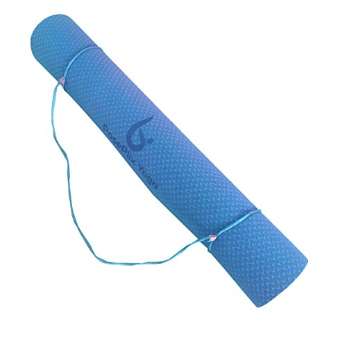 - • New Eco Friendly Material – A little more expensive, much better. TPE is the latest technological improvement to the traditional yoga mats. No latex, no PVC, non-toxic or any harmful chemicals. Our mats are made of SGS certified TPE material which is non-slip, odor-less and excellent in cushioning, unlike those cheap & traditional non-green PVC, NBR or EVA yoga mats. They are truly eco-friendly, healthy and recyclable.