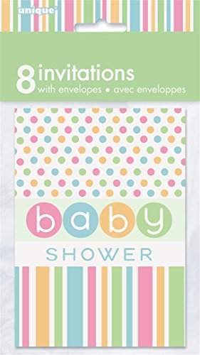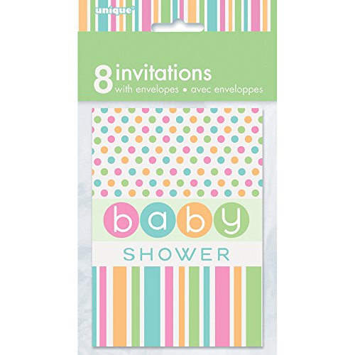 - Pastel Baby Shower Invites measure 5.5" x 4" and come with envelopes