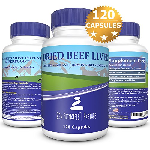 -. Title : Ultra-Pure Desiccated Beef Liver, Grass-Fed, Pasture-Raised Cows. No Hormones or GMO. Natural Energy and Workout Boost from Iron, Amino Acids, Protein and Vitamins. 120 Capsules 750 Mg.
