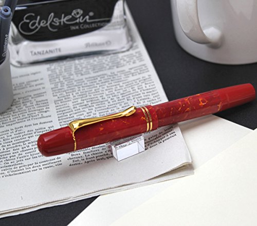 -. Feature : Color: Red || Trim: 24 k Gold / Nib: 14k Gold || Filling System: Piston Filler / Closing System: Twist || Closed length: 122 mm. / Barrel length: 116 mm. || Posted Length: 155 mm. / Barrel width: 9 mm || Weight (with cap): 15 gr.