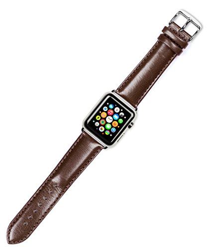 -. Title : Apple Watch Strap - Smooth Leather Band - [Short] - Brown - Fits 42mm Apple Watch [Black Adapters]