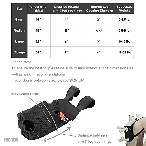 -. Binding : Misc. -. Brand : Nicrew -. Feature : Upgrated, 1.5" wide straps with shoulder pads, it will never cut into your back/shoulders any more -. Label : Nicrew -. Manufacturer : Nicrew -. PackageQuantity : 1 -. ProductGroup : Pet Products -. ProductTypeName : PET_SUPPLIES -. Publisher : Nicrew -. Studio : Nicrew -. Title : Nicrew Legs Out Front Carrier for Small Dogs, Wide Straps with Shoulder Pads, Black