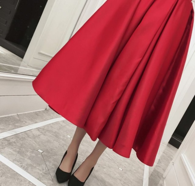 ミモレ丈のフレアスカートは、スタイル効果あり♪