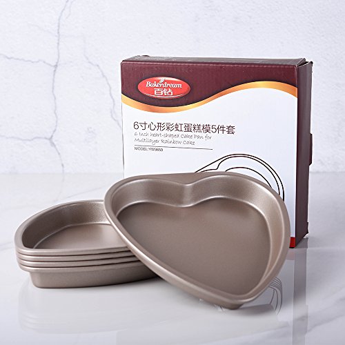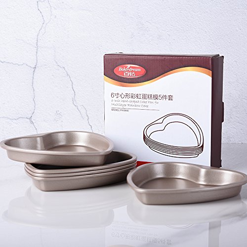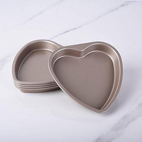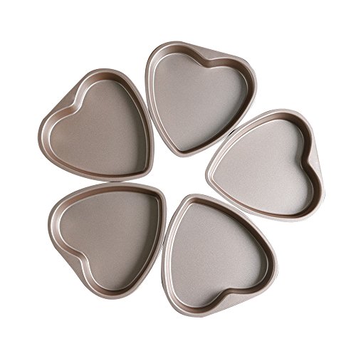 Bakerdream 5 Piece 6 inch Heart Shaped Cake Pan Set Muffin Chocolate Mold Non-Stick Heart Baking Pans (Heart Shaped)