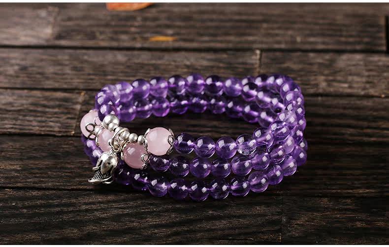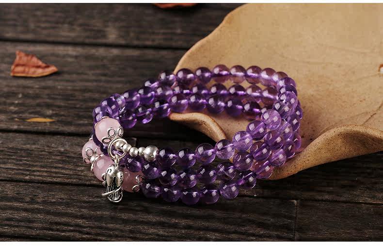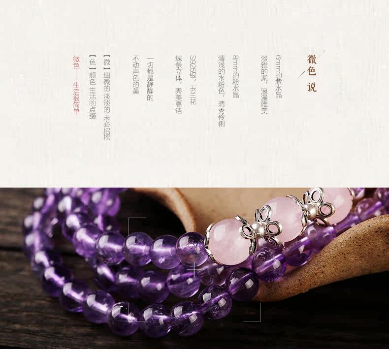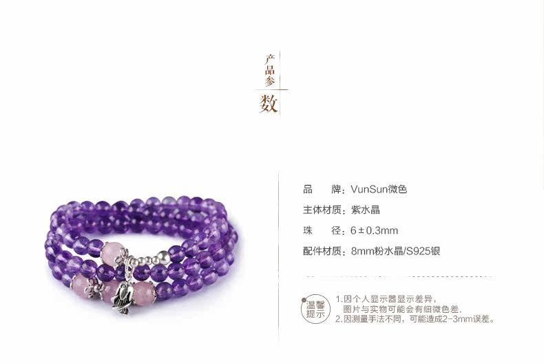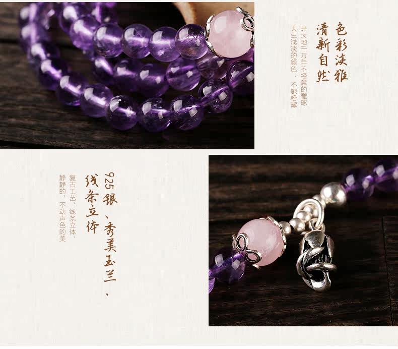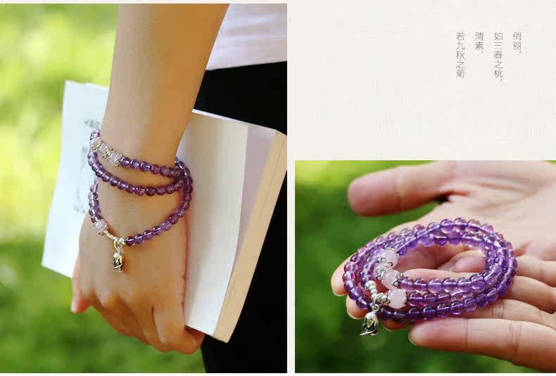 天然紫水晶手链女款多圈紫色粉水晶手串925银文艺清新饰品