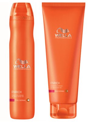 -. Binding : Health and Beauty -. Brand : Wella -. EAN : 0787734965545 -. Feature : Enrich Shampoo 10.1 oz volumizes fine and/or thin hair / Enrich Conditioner 8.4 oz moisturizes dry hair / Helps retain hair color / Adds volume and gives movement to fine, dull or limp hair / For use on fine to nromal hair -. Label : Wella International -. Manufacturer : Wella International -. Model : Wel-0124 -. MPN : 816627 -. NumberOfItems : 1 -. PackageQuantity : 1 -. PartNumber : 816627 -. ProductGroup : Beauty -. ProductTypeName : BEAUTY -. Publisher : Wella International -. Size : PrePack -. Studio : Wella International -. Title : Wella Professional Enrich Shampoo and Conditioner Duo for Fine Hair 10.1oz/8.4oz -. UPC : 787734680707