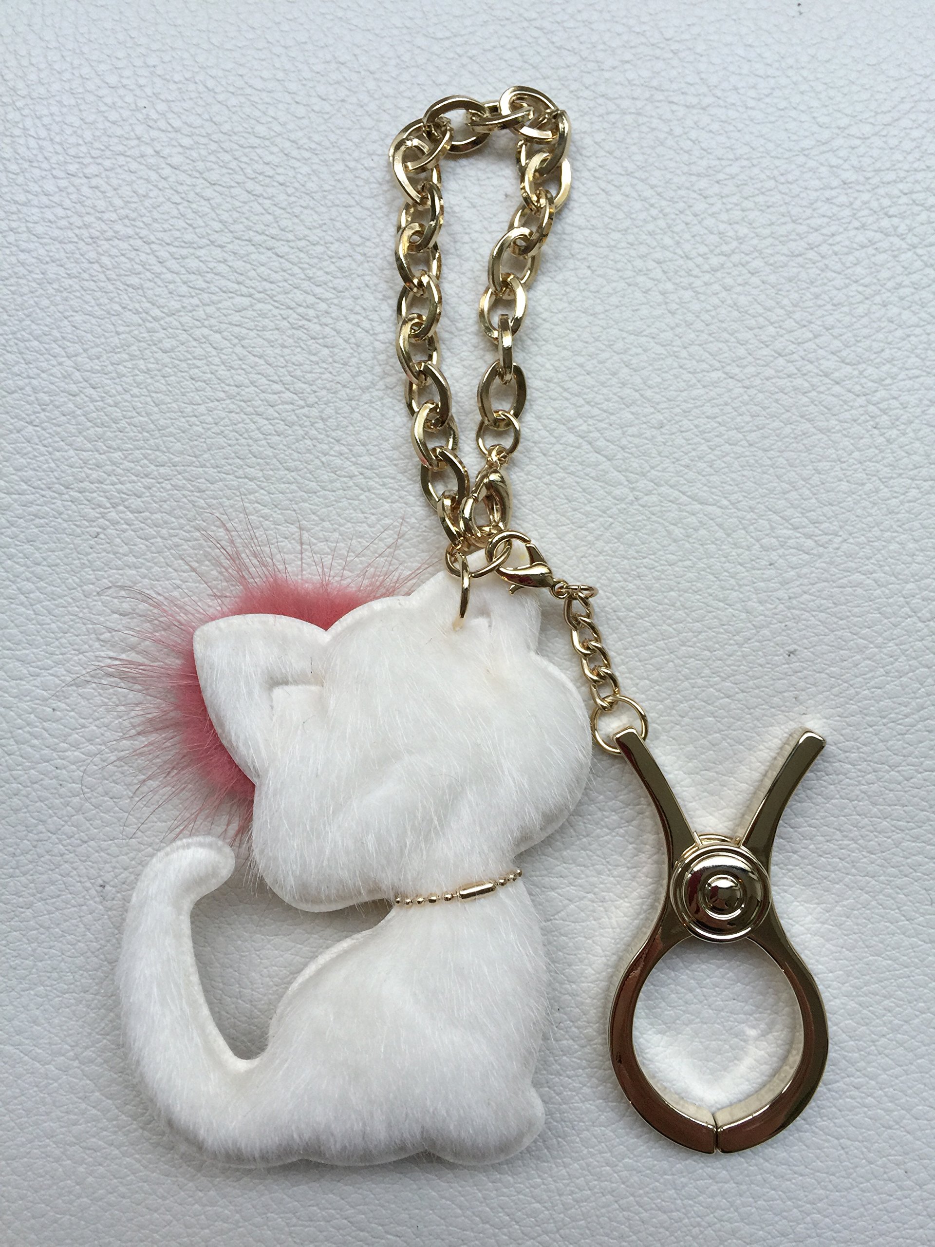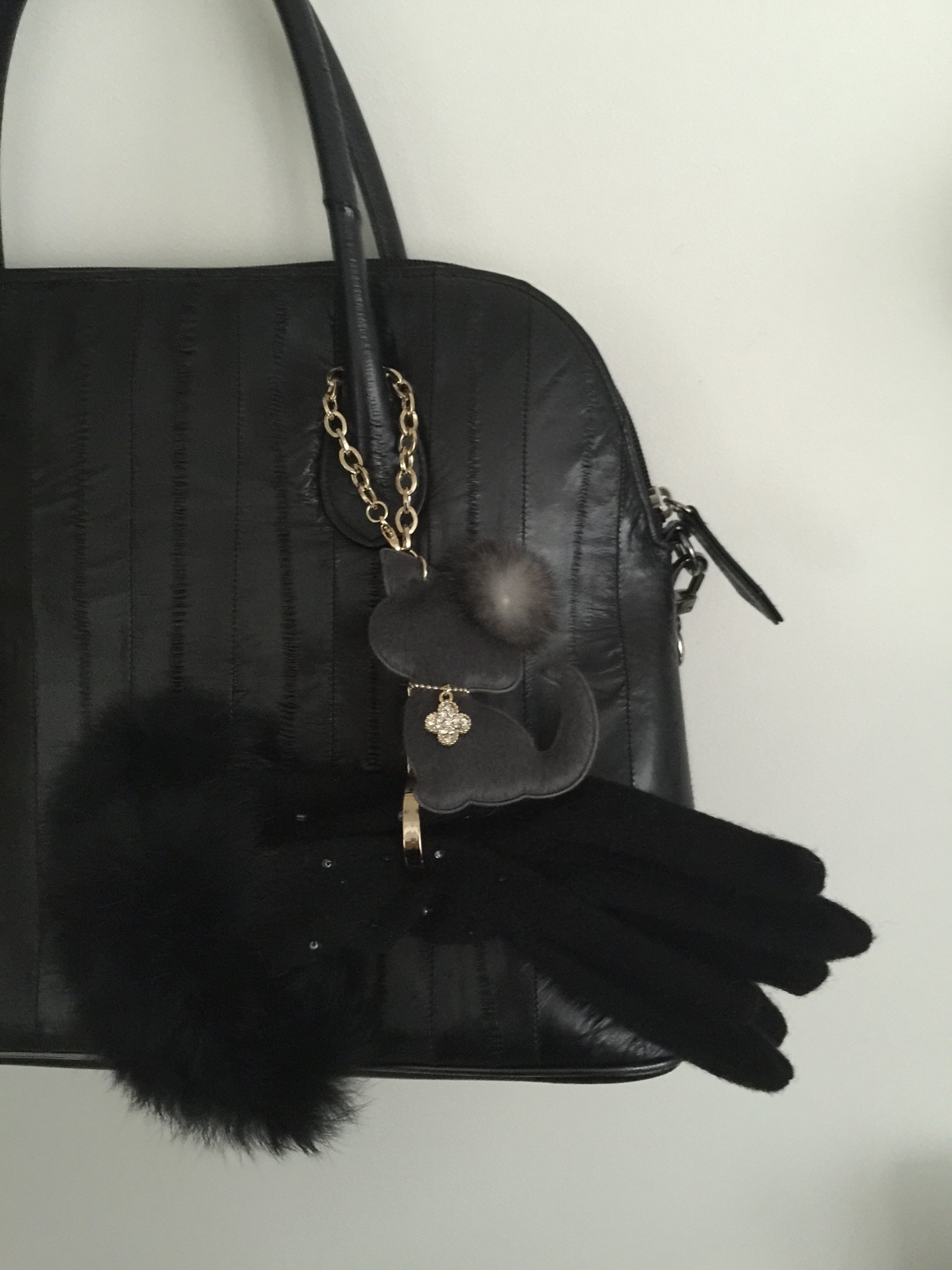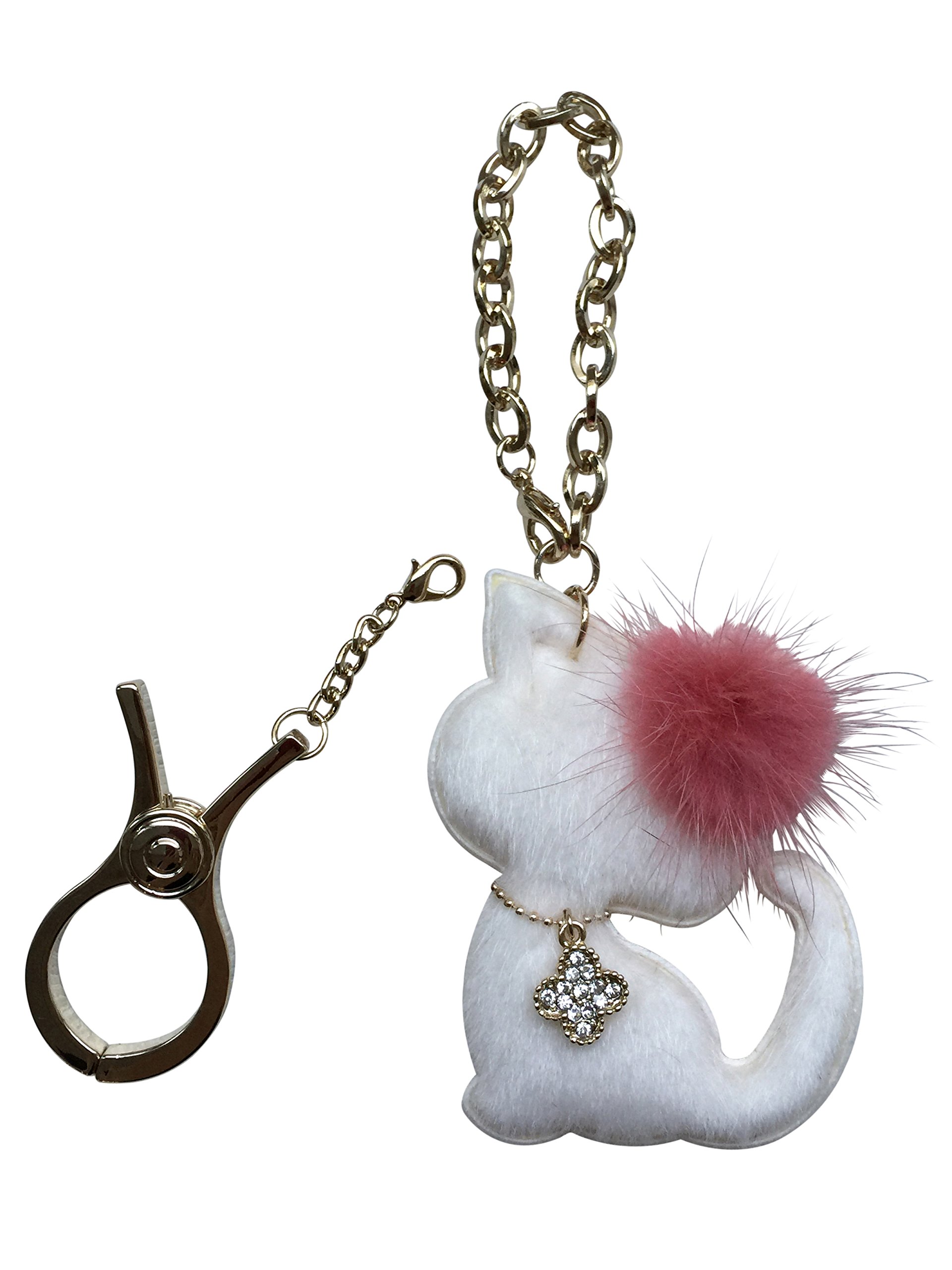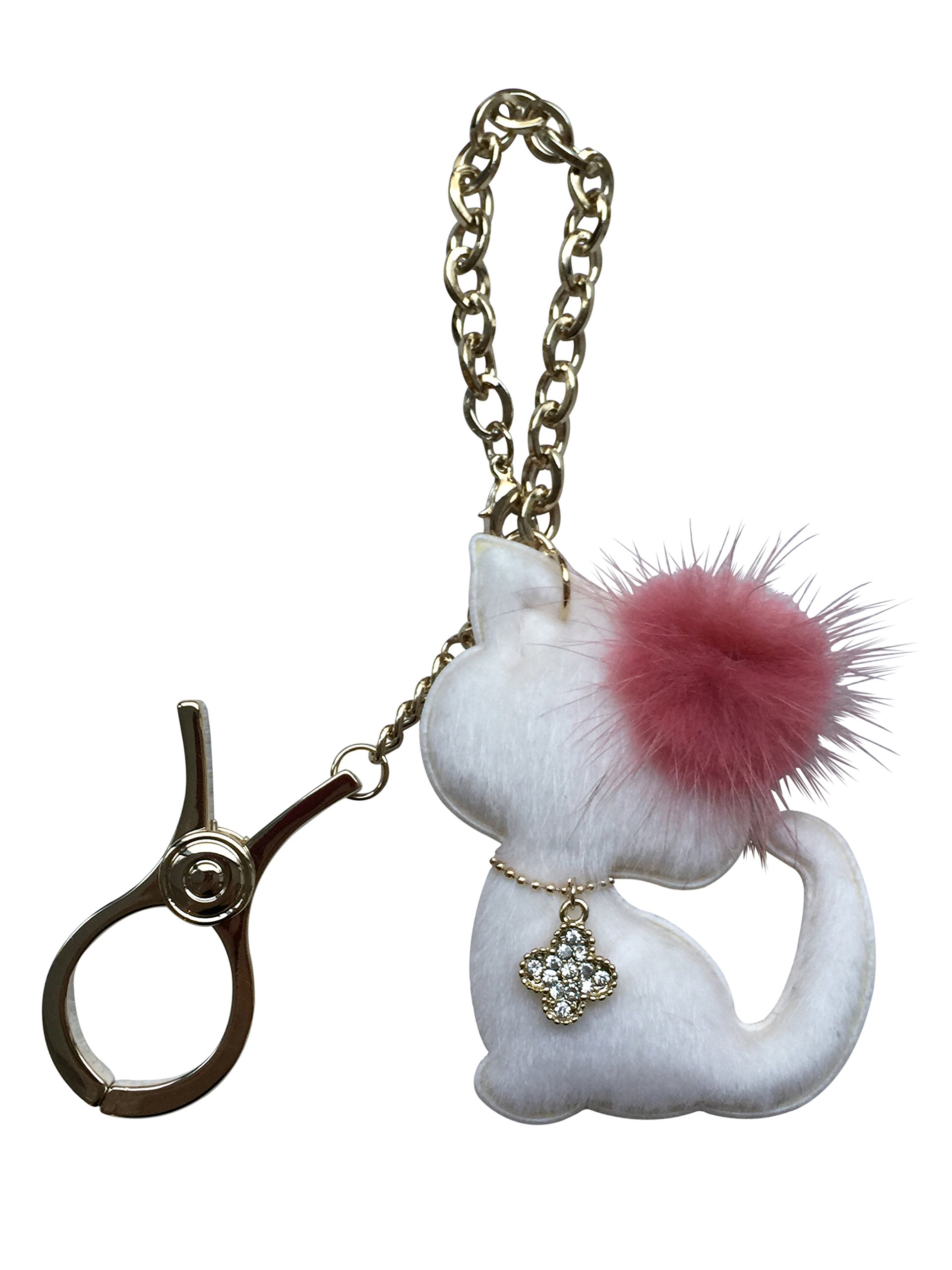 A four-leaf clover charm featuring real mink fur on the ear, rhinestone on the neck, is attached, and the same material is used for the back.