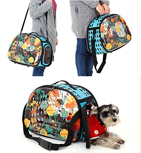 -. Feature : Adopting transparent hard plastic material on the both sides with lovely patterns printed, fashionable and easy to clean. Besides, it makes it convenient for your pet watch outside and for you to observe your pets / Great to carry pets under 6kg in travel and outdoors Size: Unfolding Size: 45*34cm / Collapsible and detached zippers design, easy and convenient to store and wash / Comes with both an adjustable shoulder strap and a portable strap, flexible to carry by hand or shoulder / Five plastic fixed nails, moisture and slip proof, to better model the shape of the bag