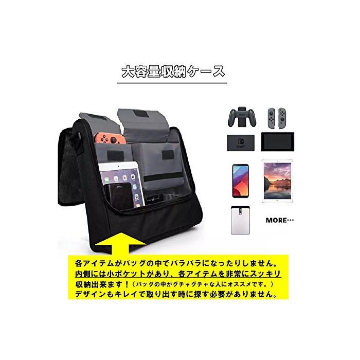 원본상품명: Nintendo Switch 肩掛け ショルダバッグ ニュモデル 大容量 周パツ スマホ タブレット 一式 まるごと 納 衝吸 ケス(ブラック)安心の3ヶ月保付 【miyabi】