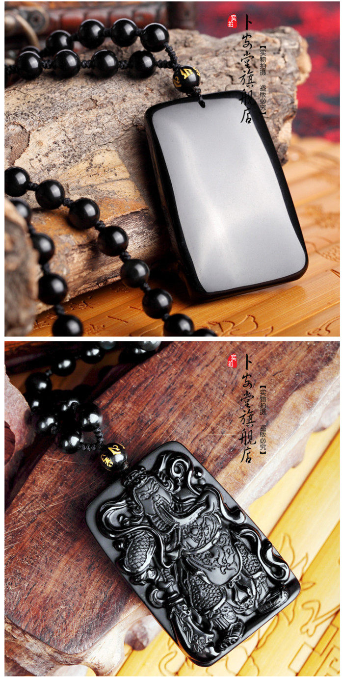 开光天然黑曜石关公吊坠 男水晶关公吊坠黑曜石关公吊坠