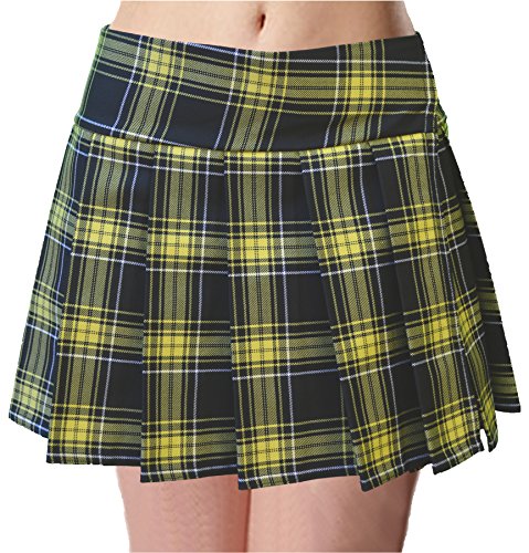 -. Title : Plus Size Black and Lemon Yellow Schoolgirl Tartan Plaid Pleated Mini Skirt Semaphore