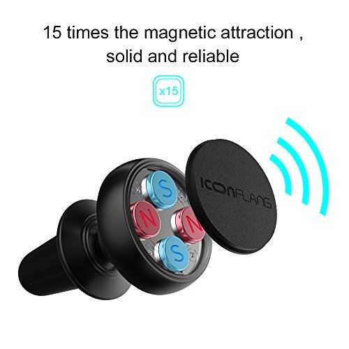 Magnetic Car Holder Unique Magnetic Air Vent Mount by ICONFLANG, Compatible With Most Case and Cell Phone – With 2 Metal Plates