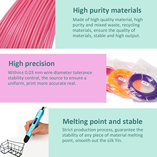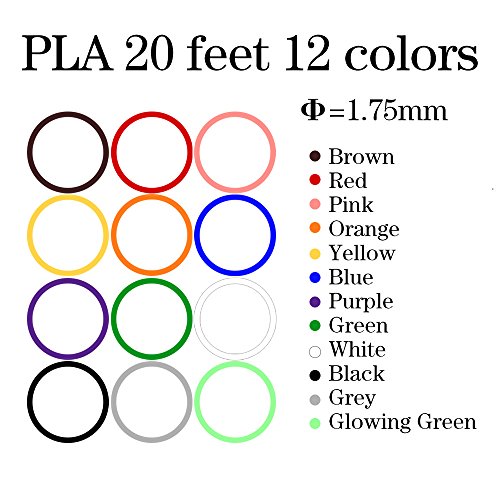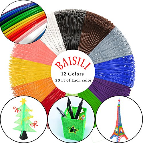 3D Printing Pen Filament Refills PLA BAISILI - 1.75mm PLA Filament, 12 Colors - 20 Ft of Each Color, No Mess, Non-toxic