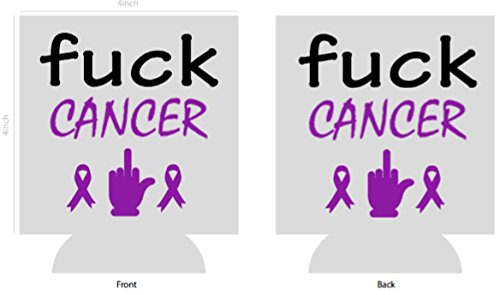 Fuck Cancer Purple Pancreatic | Ribbon Novelty Can Cooler Coolie Huggie - Set of two (2) | Beer Beverage Holder - Beer Gifts Home - Quality Neoprene No Fade Can Cooler