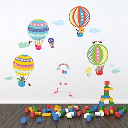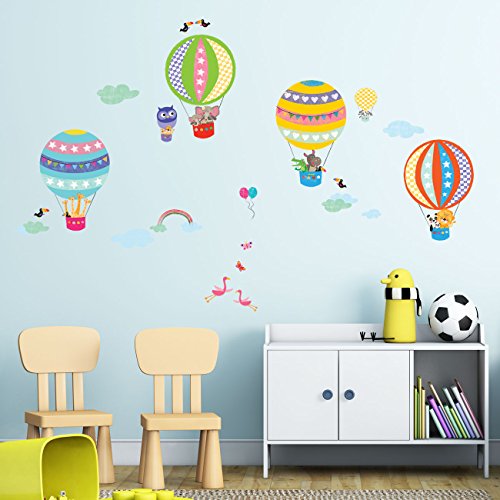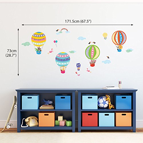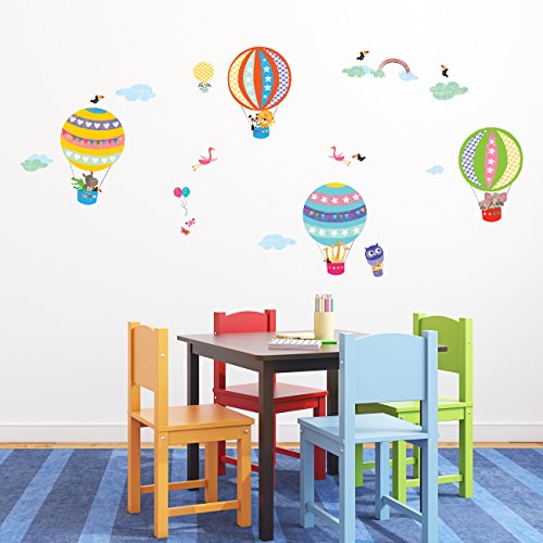 Decowall DA-1710B Hot Air Balloon Animals Kids Wall Decals Wall Stickers Peel and Stick Removable Wall Stickers for Kids Nursery Bedroom Living Room