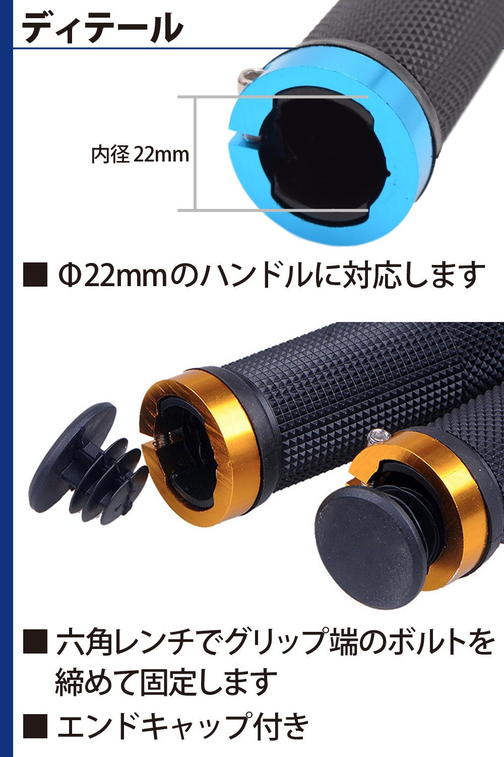 Also, since the outer diameter of the end cap is 20 mm, it can not be used if the inner diameter of the hole of the handle is larger than that.