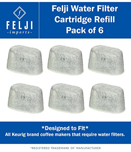 -. Brand : Felji -. EAN : 0806808504135 -. Feature : A Keurig Charcoal Water Filter replacement removes chlorine, calcium and water impurities when brewing with your Keurig coffee maker. / To fully enjoy the aroma and delicious taste of brewed coffee, you need to change your water filter regularly. / Set of 6 charcoal water filters / Measures 2" L x 1.5" W x 1.5"H / Designed for all Keurig brand coffee makers that require water filters -. Label : Felji -. Manufacturer : Felji -. MPN : 308 -. PartNumber : 308 -. ProductGroup : Kitchen -. ProductTypeName : KITCHEN -. Publisher : Felji -. Studio : Felji -. Title : 6 Pack Felji Charcoal Water Filter Replacement For Keurig -. UPC : 806808504135