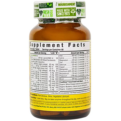 Studio : MegaFood Publisher : MegaFood Binding : Health and Beauty Product Description MegaFood One Daily provides authentic nourishment in a convenient one-daily tablet formula to replenish the body with nutrients that may be lacking in the diet. Unlike conventional multi-vitamins, MegaFood One Daily delivers the promise of farm fresh foods, which means you'receive more than just vitamins alone. We make our FoodState Nutrients from scratch with organic brown rice, whole carrots, broccoli and nutritional yeast to provide essential nutrients with protective phytonutrients and antioxidants. MegaFood has received the Non-GMO Project Verified seal from the Non-GMO Project. The Non-GMO Project is a third party certification program that assures a product has been produced according to consensus-based best practices for GMO (genetically modified organism) avoidance. 0