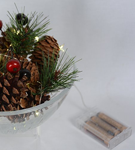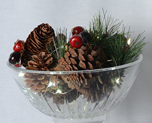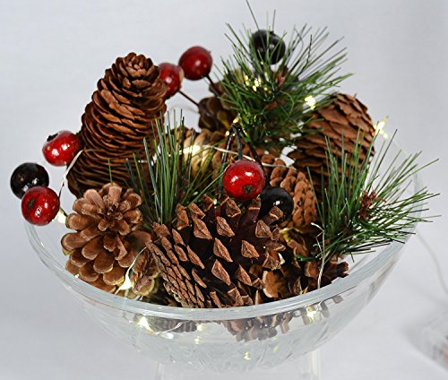 Lighted Christmas and Holiday Pine Cones and Berries Bowl Filler / Vase Filler - Battery Operated LED Lights