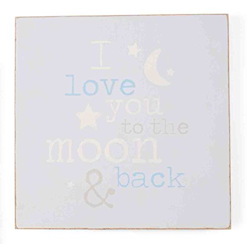 -. Binding : Baby Product -. Brand : Mud Pie -. Color : Moon and Back, Blue -. Department : baby-boys -. EAN : 0718540288122 -. Feature : Makes a great shower gift for the new mom / Hang in your babies room to complete the look / Large plaque measures 12" 12" -. IsAdultProduct : 0 -. Label : Mud Pie -. Manufacturer : Mud Pie -. Model : 2002144-L -. MPN : 2002144-L -. PackageQuantity : 1 -. PartNumber : 2002144-L -. ProductGroup : Baby Product -. ProductTypeName : BABY_PRODUCT -. Publisher : Mud Pie -. ReleaseDate : 2015-03-19 -. Size : One Size -. Studio : Mud Pie -. Title : Mud Pie Plaque, Moon and Back, Blue -. UPC : 718540288122