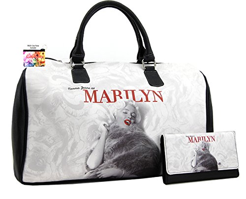 -. Brand : Marilyn Monroe -. Color : Black -. Department : womens -. EAN : 0752584761999 -. Feature : Norma Jeane as Marilyn duffle bag and wallet set / Plus California coin purse / Faux leather, Top zip closure / Officially licensed / More details in the description -. PackageQuantity : 2 -. ProductGroup : Apparel -. ProductTypeName : LAGE -. Size : Large -. Title : Marilyn Monroe Large Travel Bag and Wallet Set, Norma Jeane as Marilyn, MM9123-SET -. UPC : 752584761999