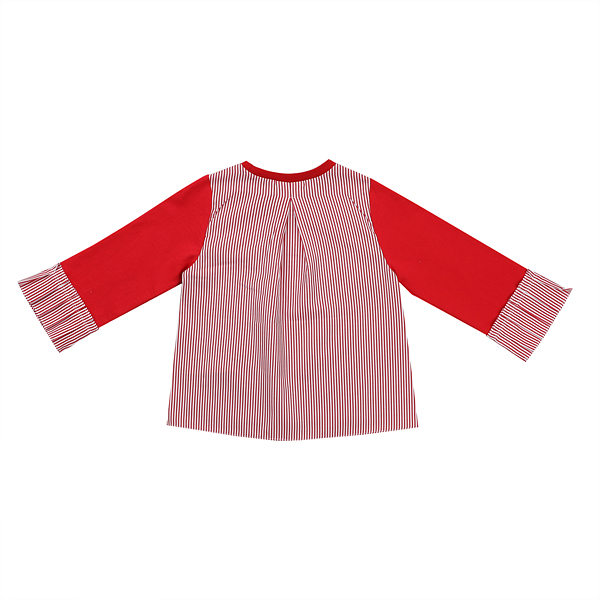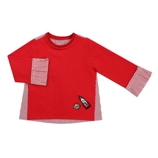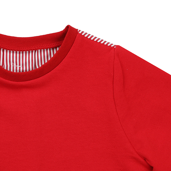 상세설명-소매부분과 뒷부분을 스트라이프컬러로 배색처리하여 세련된 느낌으로 코디되는 티셔츠입니다.